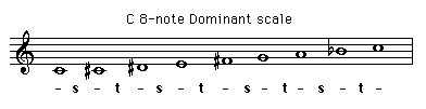 8-note Dominant scale (semitone – tone – semitone – tone -)