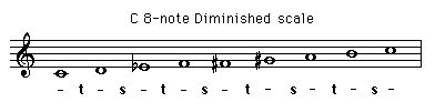 8-note Diminished scale (tone – semitone – tone – semitone – )