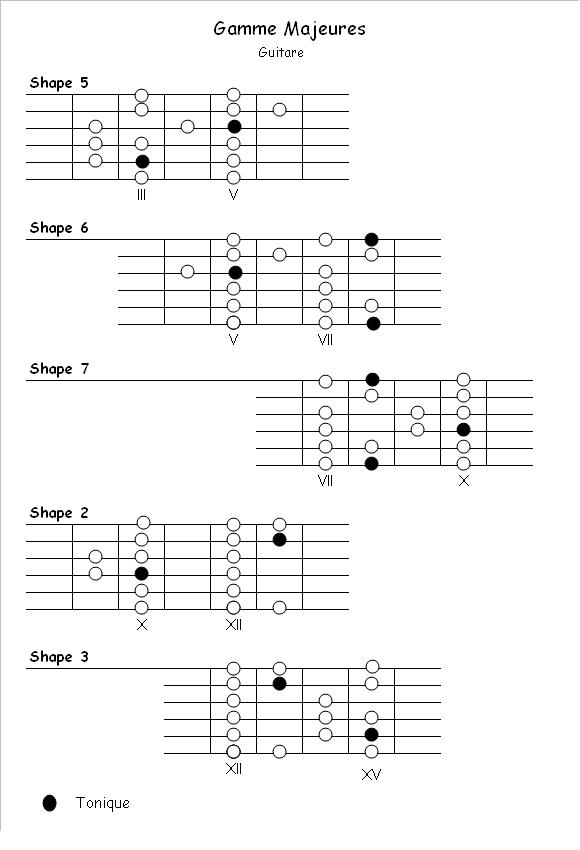 Simple Shapes/patterns to learn and exercise major scales using the five guitar patterns