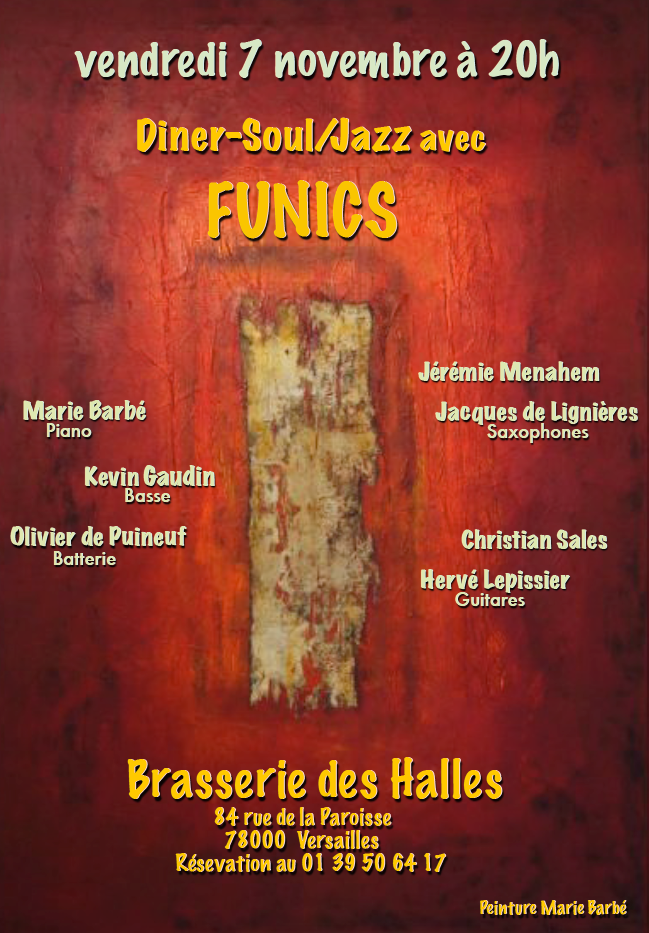 In Concert on November 2, 2014 at 9:28 pmfunics à la brasserie des Halles, le 7 novembre 2014, Versailles, 84 rue de la Paroisse