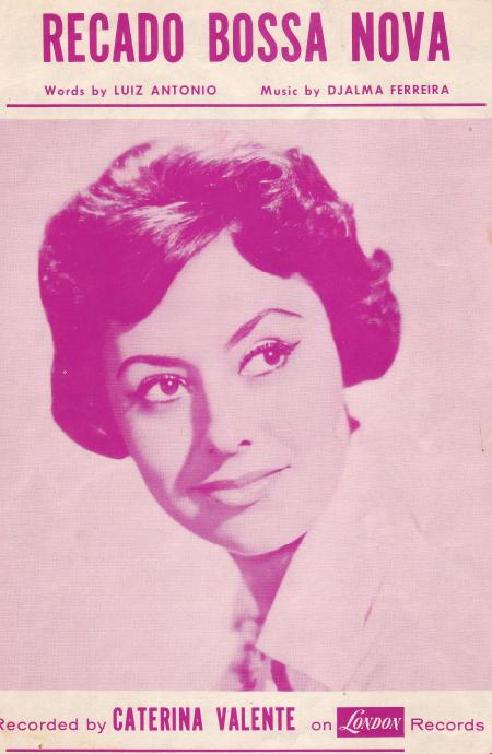 In Partitions, Recado Bossa Nova, Scales on November 17, 2009 at 9:39 amTrouvée sur eBay par notre ami Tofie, voici la partition de Recado Bossa Nova, chantée par Caterina Valente, et publiée en 1959.